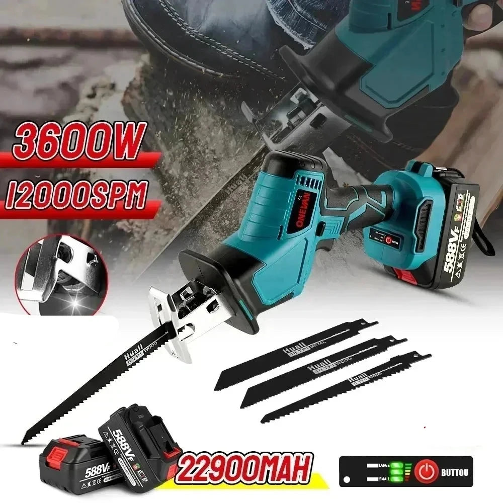 3600W 12000SPM Borstelloze Reciprozaag - Draadloze Kettingzaag Zaag voor Houtsnijden met Zaagblad voor Makita 18V Batterij